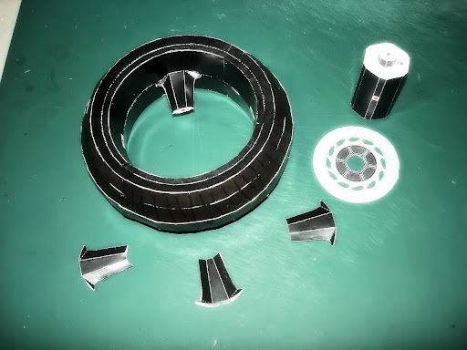 ชิ้นส่วนต่างๆ ที่รอการประกอบเป็นล้อหลัง